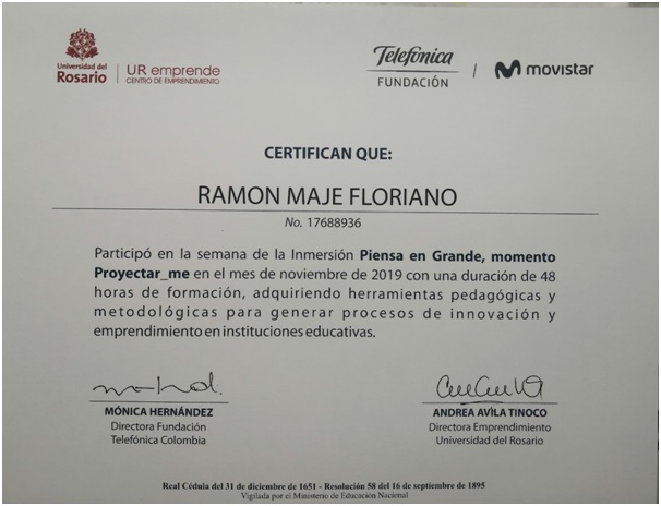 https://www.youtube.com/watch?v=S8oCFCEMtxs&list=WLPremio internacional: ganador del concurso latinoamericano maestros que inspiran. Fundación maestros que inspiran y aulas amigas. Diciembre de 2019